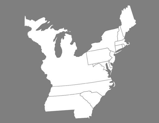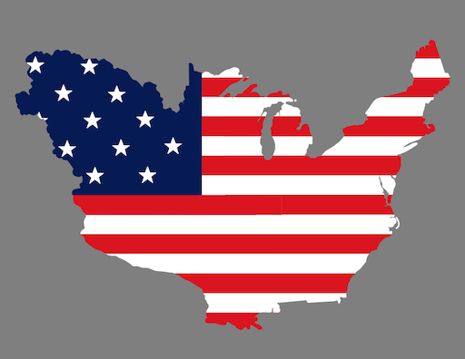 However, if you include America’s territories along with the states, you get another unusual, yet potentially more familiar, shape. One of the very first shapes of the US was in the year 1776, when the US claimed independence. The land claimed, and eventually won, by the United States stretched from north of Florida to south of New Brunswick, and from the Atlantic Ocean to the Mississippi River. The US was sandwiched between three nations: Spain to the South, France to the West, and Great Britain to the North, but things were soon to change!