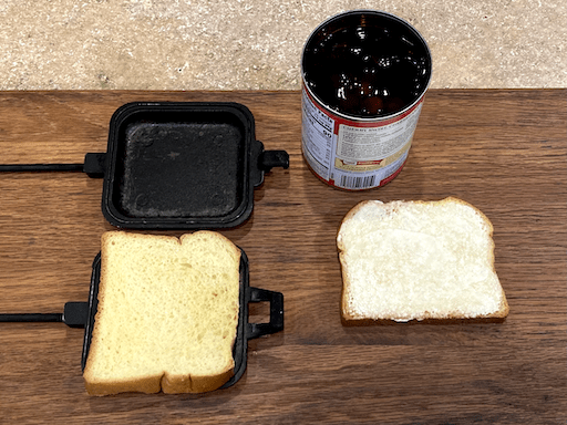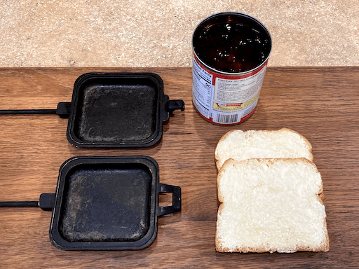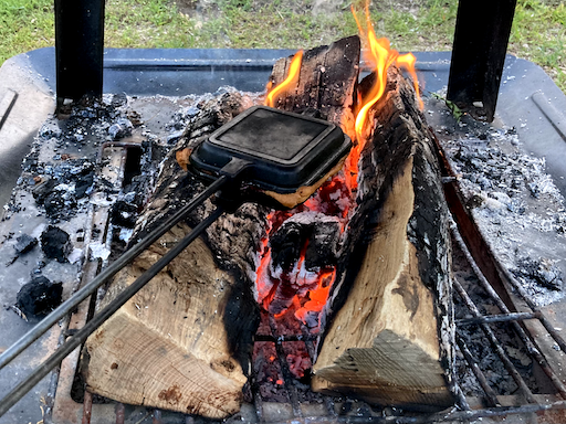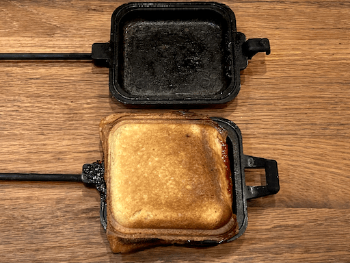 To make a fire pie for yourself, you first need a pie iron. You can buy pie irons online, and if you want my opinion, I would recommend this one on Amazon (I am not paid to recommend this product); I roasted my pie on a vintage pie iron, and the iron I linked seems to be similar in quality to the one I used.