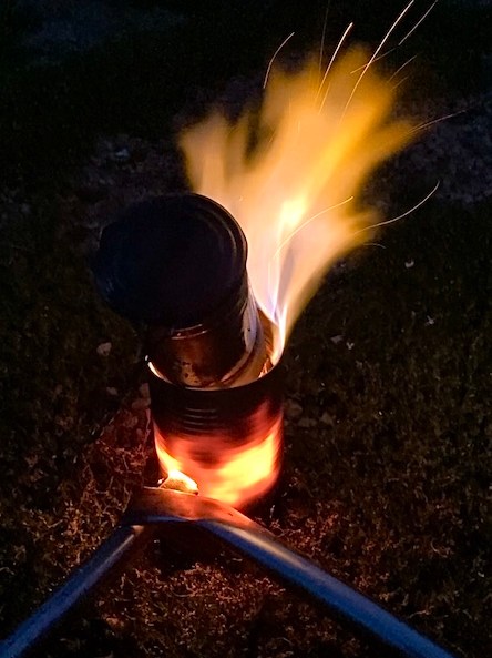 I threw a small piece of aluminum onto the coals, but I was frustrated to see that the aluminum didn’t form a shiny puddle; instead, it severely oxidized. This happened because molten aluminum is quite reactive and I was literally blowing oxygen onto the reactive aluminum when I was trying to fuel the coals. I realized that I needed some type of metal container to hold my molten aluminum while protecting it from oxygen, which just turned out to be a crucible; rather than learn from my last melt, I reinvented the crucible. I’m not sure why the word crucible never crossed my mind that night, maybe the lead fumes were messing with my brain. I’m joking, of course, I was in a well ventilated area, aka outside, and I was also upwind of the lead; I research and take precautions before starting any project.