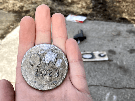 Despite the dangers and rudimentary nature of my foundry, I managed to cast my first ever coin. I did have to recast my coin once because of the previously mentioned water vapor issue, but it was an almost perfect success.