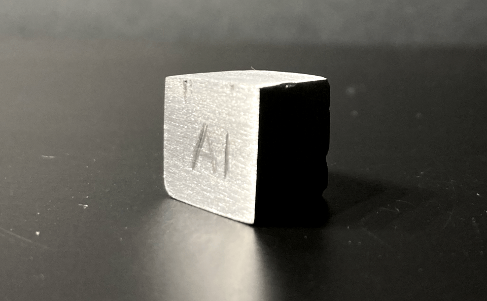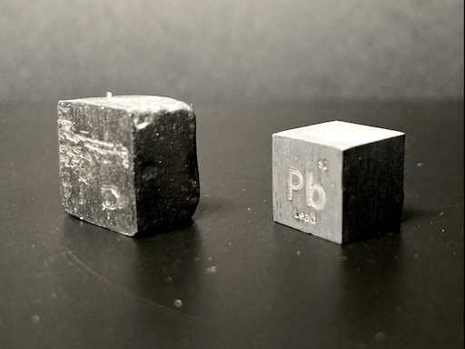 After I cut off the riser, I used a metal file to grind all six sides down until they were flat and mostly free of indentations. After this, I used a piece of fine grit sandpaper and lightly sanded each side in a single direction to give the cube a smoother finish, which ended up looking like brushed metal. Remember: always wear a mask and have plenty of ventilation when cutting or sanding materials because fine dust is very unhealthy to breathe, especially when it is dust from metals and toxic materials. I would never recommend sanding down lead due to the toxicity of lead; I will likely never sand down another lead cube; even the one cube that I did sand down is not done perfectly, since I wasn’t interested in spending lots of time making lead dust.