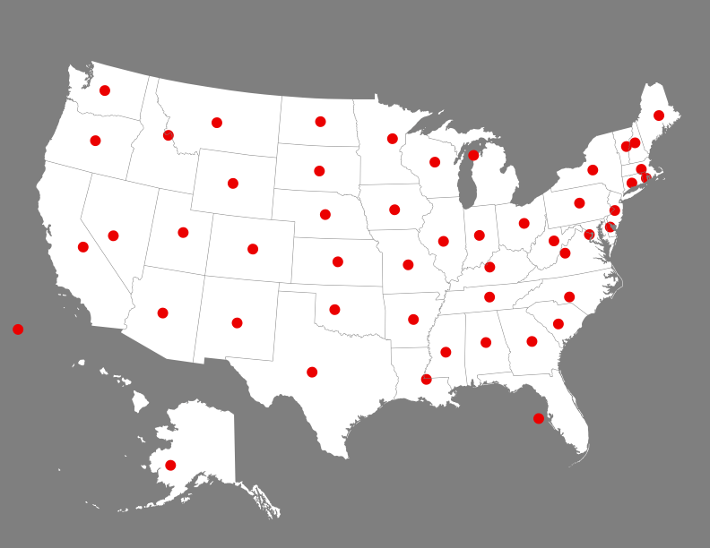 | State | City | Coordinates |