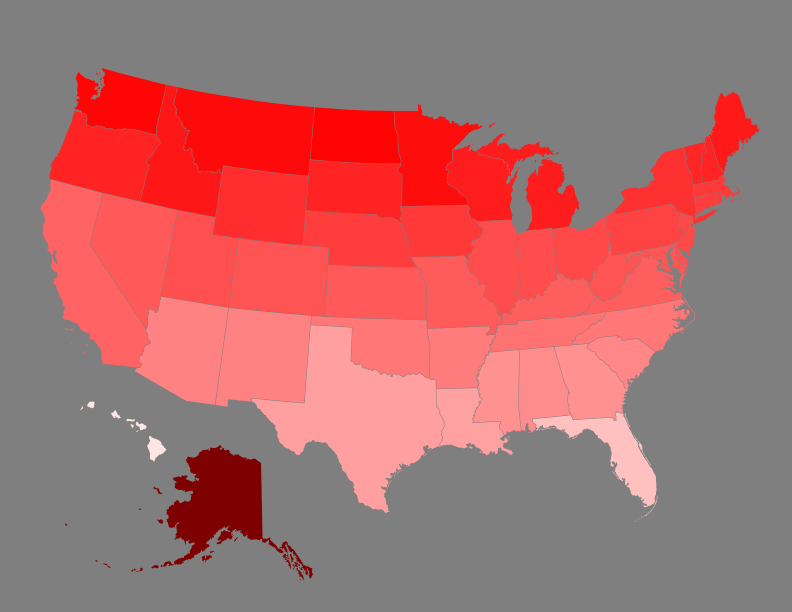 Hold on, why does the mean longitude of Hawaii appear to be west of the entirety of Hawaii? How can this be the middle of Hawaii if it is outside of the state? This is because the 8 largest islands in Hawaii that we usually recognized as the state of Hawaii are only the southeastern portion of the Hawaiian Islands. In reality, the state of Hawaii officially recognizes 137 islands, stretching a little further west than Midway Atoll; this makes Hawaii over 1,500 miles long. If you don’t count any Hawaiian Islands besides the 8 main islands, then Alaska is the furthest west state, but for this post, I am considering all 137 islands.
