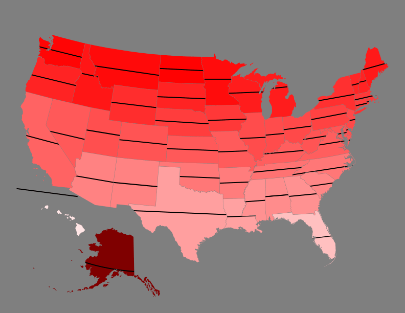 - North Dakota (47.5ºN)