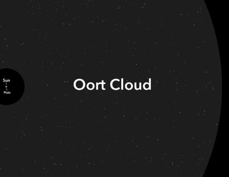It’s also important to realize that this is only the closer boundary of the Oort Cloud; the further boundary is said to be 100,000 AU away from the Sun; here is the distance of the outer boundary of the Oort Cloud put into perspective.